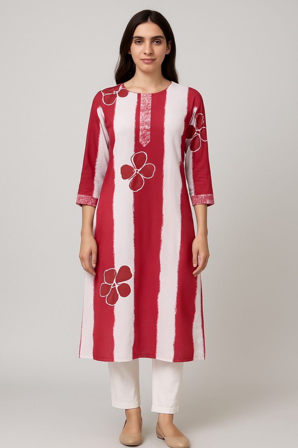 Red color kurti with flower motif